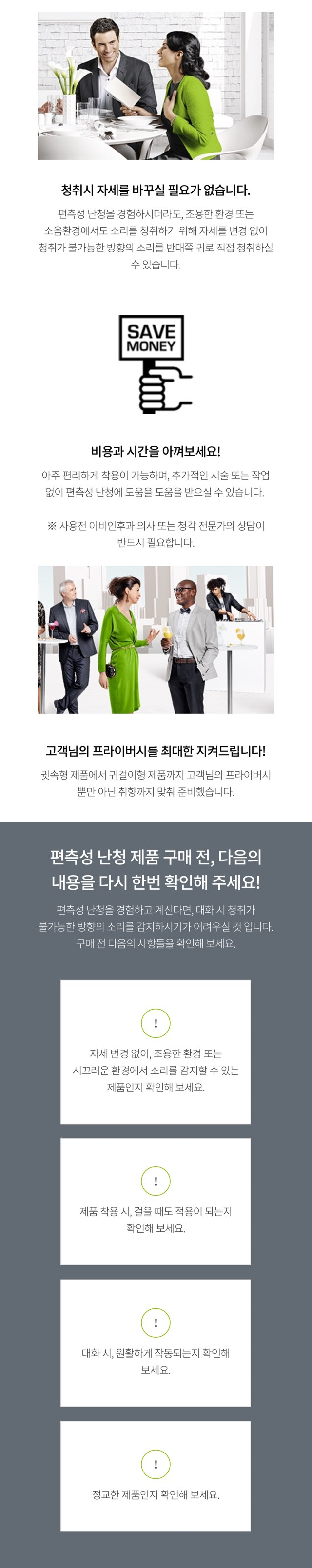 한쪽 귀의 청취가 불가능하여 소음이 많은 공간, 가족, 친구들의 소리들의 청취에 어려움을 경험하신가요?